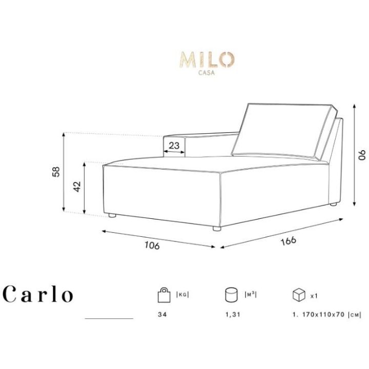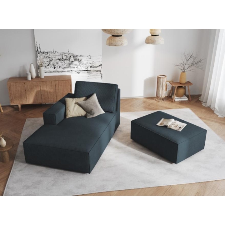 The Carlo chaise longue from the manufacturer Milo Casa is a proposal for those looking for unusual solutions for modern rooms with a unique style. This incredibly comfortable lounger with a unique design is upholstered in corduroy matt fabric and is available in 8 colours: Beige, Light Blue, Dark Blue, Grey, Light Grey, Yellow, Black and Bottle Green. The seat is filled with corrugated spring and polyurethane foam and the back is filled with silicone. The furniture measuring 106 cm wide, 90 cm high and 166 cm deep guarantees comfort at the highest level, also thanks to the seat height of 42 cm. The shape of the unit has been selected to suit the anatomy of the human body, making it very ergonomic. The chaise longue is available in the left or right version.