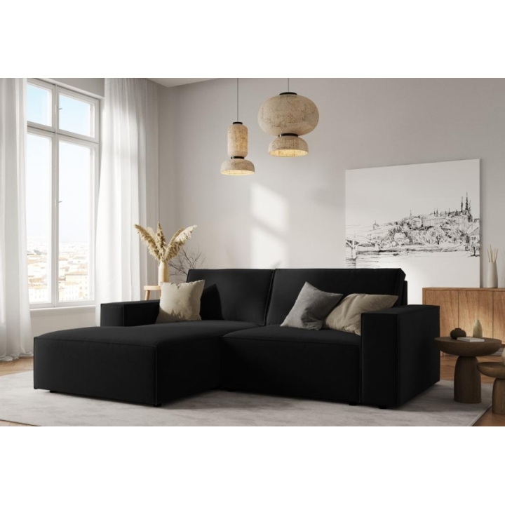 The compact Carlo 3-seater corner sofa from the manufacturer Milo Casa is a piece of furniture that measures: 229 cm wide, 90 cm high, 166 cm deep, which is characterised by its extreme comfort. This trendy corner sofa is available in 7 colours: Light Beige, Royal Blue, Grey, Light Grey, Yellow, Black and Bottle Green, so it will suit any type of interior. The seat filling is made from a combination of corrugated spring and high elasticity polyurethane foam, and the backrest is filled with silicone. A distinctive feature of the sofa is its small size, which will make it fit into most rooms. The furniture is upholstered with velvet fabric, nice and pleasant to the touch with a delicate sheen, which ensures the highest comfort of rest, and is additionally resistant to abrasion. The high-quality materials used in the production of the furniture make the Carlo corner sofa characterised by high strength and durability. The furniture is set on low, plastic legs. The sofa can be manufactured on the left or on the right, so you can better adapt the furniture to your home.