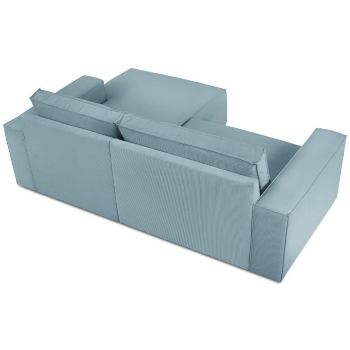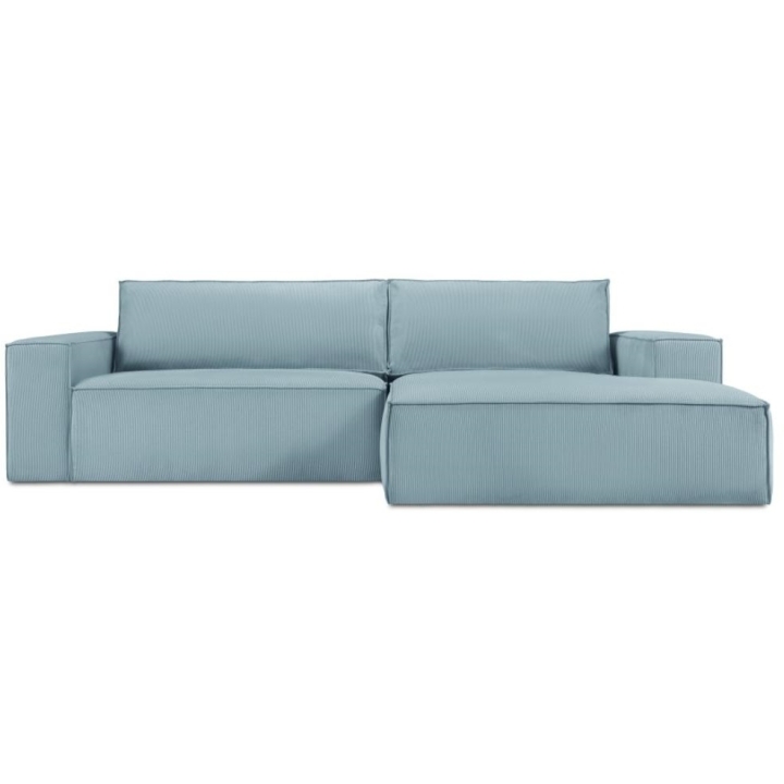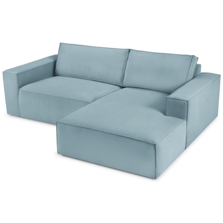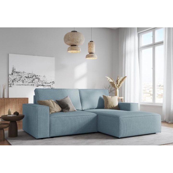 The compact Carlo 3-seater corner sofa from the manufacturer Milo Casa is a piece of furniture that measures: 229 cm wide, 90 cm high, 166 cm deep, which is characterised by its extreme comfort. This trendy corner sofa is available in 8 colours: Beige, Light Blue, Dark Blue, Grey, Light Grey, Yellow, Black and Bottle Green, so it will suit any type of interior. The seat filling is made from a combination of corrugated spring and high elasticity polyurethane foam, and the backrest is filled with silicone. A distinctive feature of the sofa is its small size, which will make it fit into most rooms. The sofa is upholstered in corduroy fabric with a matte structure made of narrow 3 mm wide stripes, which ensures the highest comfort of relaxation and is also pleasant to the touch. The high quality materials used in the production of the furniture make the Carlo corner sofa strong and durable. The furniture is set on low, plastic legs. The sofa can be manufactured on the left or on the right, so you can better adapt the furniture to your home.