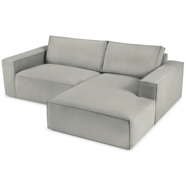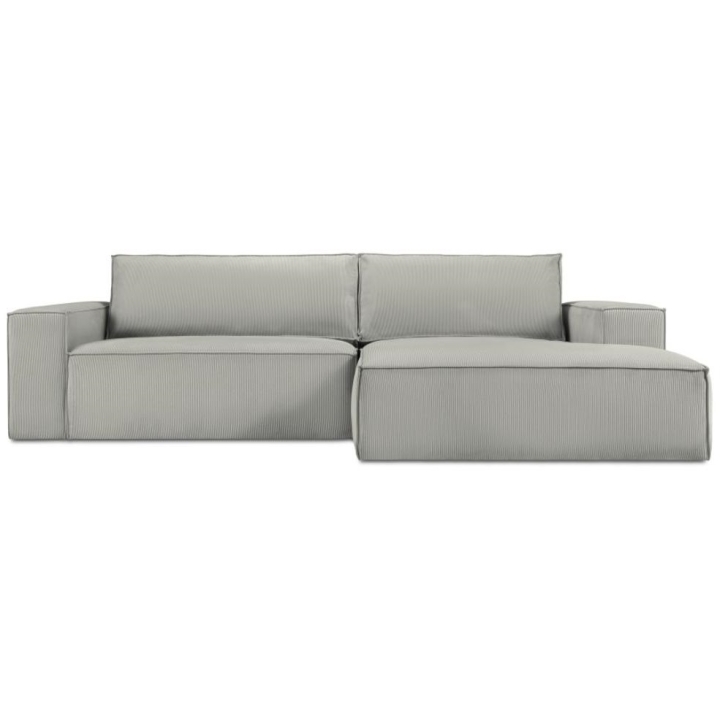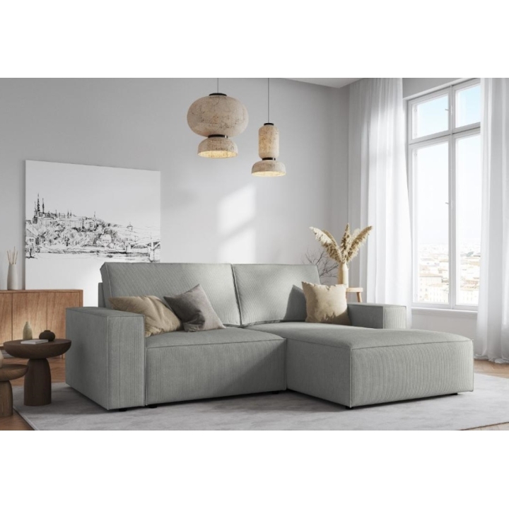 The compact Carlo 3-seater corner sofa from the manufacturer Milo Casa is a piece of furniture that measures: 229 cm wide, 90 cm high, 166 cm deep, which is characterised by its extreme comfort. This trendy corner sofa is available in 8 colours: Beige, Light Blue, Dark Blue, Grey, Light Grey, Yellow, Black and Bottle Green, so it will suit any type of interior. The seat filling is made from a combination of corrugated spring and high elasticity polyurethane foam, and the backrest is filled with silicone. A distinctive feature of the sofa is its small size, which will make it fit into most rooms. The sofa is upholstered in corduroy fabric with a matte structure made of narrow 3 mm wide stripes, which ensures the highest comfort of relaxation and is also pleasant to the touch. The high quality materials used in the production of the furniture make the Carlo corner sofa strong and durable. The furniture is set on low, plastic legs. The sofa can be manufactured on the left or on the right, so you can better adapt the furniture to your home.