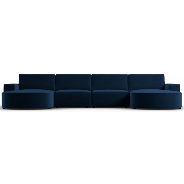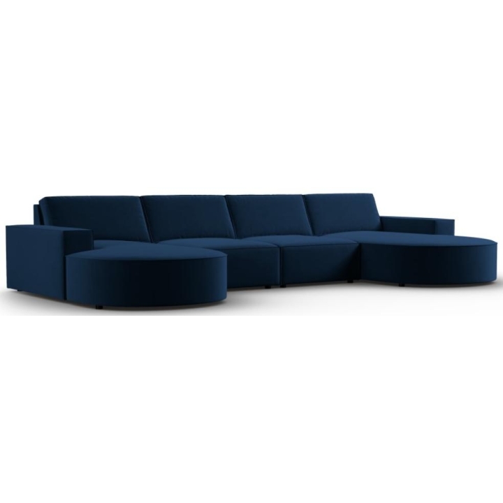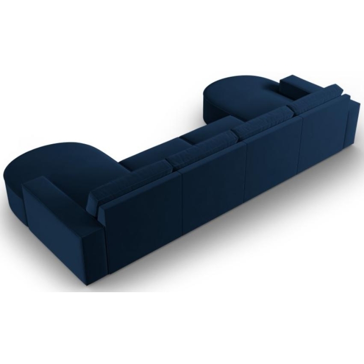 The modern panoramic 5-seater Carlo rounded corner sofa from the manufacturer Milo Casa is a piece of furniture that measures: 372 cm wide, 90 cm high, 166 cm deep on both sides, which is characterised by its extreme comfort. This trendy corner sofa is available in 7 colours: Light Beige, Royal Blue, Grey, Light Grey, Yellow, Black and Bottle Green, so it will suit any type of interior. The seat filling is made from a combination of corrugated spring and high elasticity polyurethane foam, while the backrest is filled with silicone. A distinctive feature of the sofa is its unusual, futuristic shape - the body resembles the letter 'U', making it a perfect piece of furniture for social gatherings. In addition, the loungers have been rounded, which makes it a unique proposal. The sofa has been upholstered with velvet fabric that is silky and extremely soft to the touch, ensuring the ultimate comfort of rest. The high quality materials used in the production of the furniture make the Carlo panoramic sofa characterised by great strength and durability. The furniture is set on low, plastic legs.