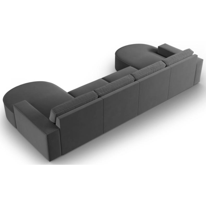 The modern panoramic 5-seater Carlo rounded corner sofa from the manufacturer Milo Casa is a piece of furniture that measures: 372 cm wide, 90 cm high, 166 cm deep on both sides, which is characterised by its extreme comfort. This trendy corner sofa is available in 7 colours: Light Beige, Royal Blue, Grey, Light Grey, Yellow, Black and Bottle Green, so it will suit any type of interior. The seat filling is made from a combination of corrugated spring and high elasticity polyurethane foam, while the backrest is filled with silicone. A distinctive feature of the sofa is its unusual, futuristic shape - the body resembles the letter 'U', making it a perfect piece of furniture for social gatherings. In addition, the loungers have been rounded, which makes it a unique proposal. The sofa has been upholstered with velvet fabric that is silky and extremely soft to the touch, ensuring the ultimate comfort of rest. The high quality materials used in the production of the furniture make the Carlo panoramic sofa characterised by great strength and durability. The furniture is set on low, plastic legs.