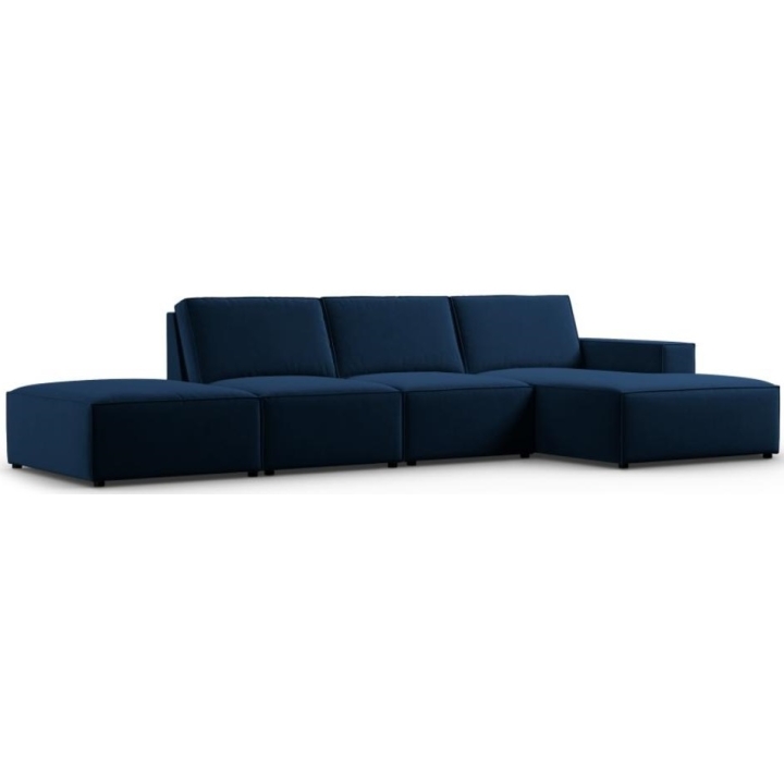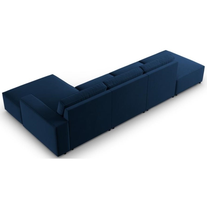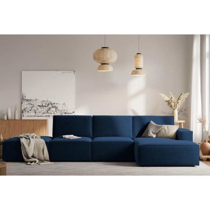 The stylish corner sofa 5 seater. Carlo by the manufacturer Milo Casais a piece of furniture with dimensions: 341 cm wide, 90 cm high, 166 cm deep, which is characterised by its extreme comfort. This trendy corner sofa is available in 7 colours: Light Beige, Royal Blue, Grey, Light Grey, Yellow, Black and Bottle Green, so it will suit any type of interior. The seat filling is made of a combination of corrugated spring and high elasticity polyurethane foam, and the backrest is filled with silicone. The sofa is distinguished by its unusual, futuristic shape - it does not have a single backrest, which makes it more spacious. The piece of furniture is upholstered with velvet fabric, silky and pleasant to the touch with a delicate sheen, which ensures the highest comfort of relaxation and is also resistant to abrasion. Martindale test of 50,000 cycles. The high-quality materials used in the production of the furniture make the Carlo corner sofa characterised by high strength and durability. The furniture is set on low, plastic legs. The sofa can be manufactured on the left or on the right, so you can better adapt the furniture to your home.
