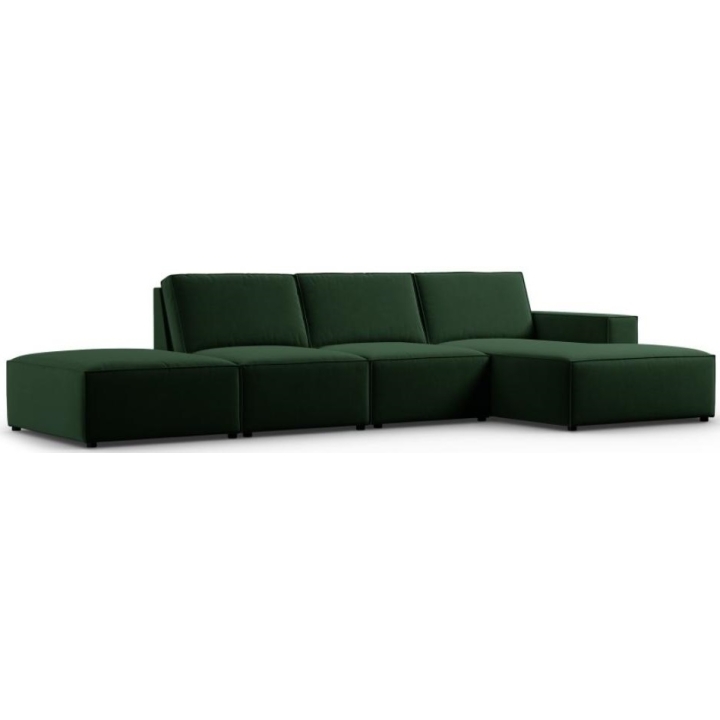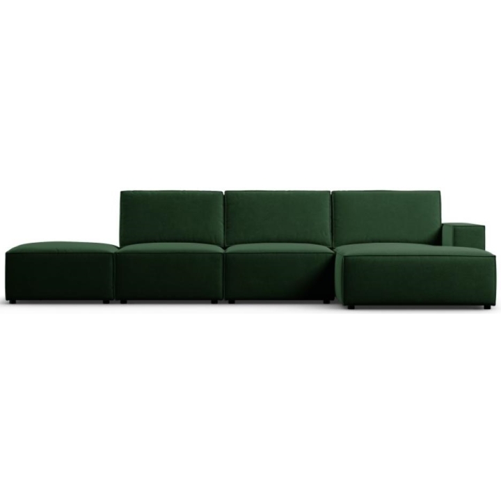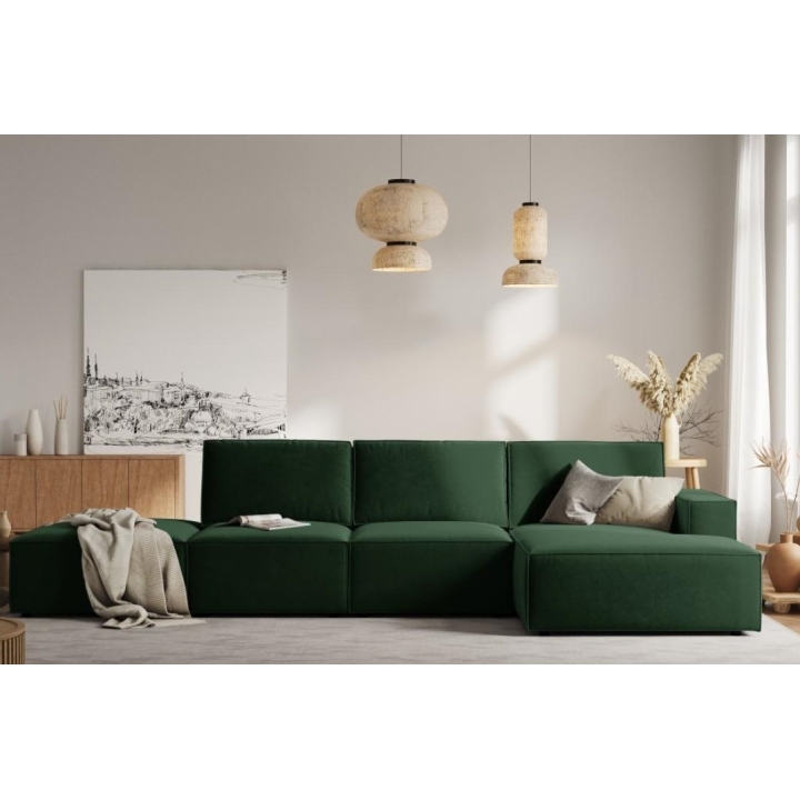 The stylish corner sofa 5 seater. Carlo by the manufacturer Milo Casais a piece of furniture with dimensions: 341 cm wide, 90 cm high, 166 cm deep, which is characterised by its extreme comfort. This trendy corner sofa is available in 7 colours: Light Beige, Royal Blue, Grey, Light Grey, Yellow, Black and Bottle Green, so it will suit any type of interior. The seat filling is made of a combination of corrugated spring and high elasticity polyurethane foam, and the backrest is filled with silicone. The sofa is distinguished by its unusual, futuristic shape - it does not have a single backrest, which makes it more spacious. The piece of furniture is upholstered with velvet fabric, silky and pleasant to the touch with a delicate sheen, which ensures the highest comfort of relaxation and is also resistant to abrasion. Martindale test of 50,000 cycles. The high-quality materials used in the production of the furniture make the Carlo corner sofa characterised by high strength and durability. The furniture is set on low, plastic legs. The sofa can be manufactured on the left or on the right, so you can better adapt the furniture to your home.