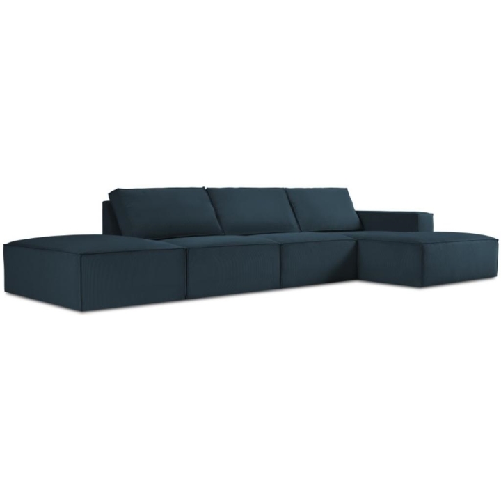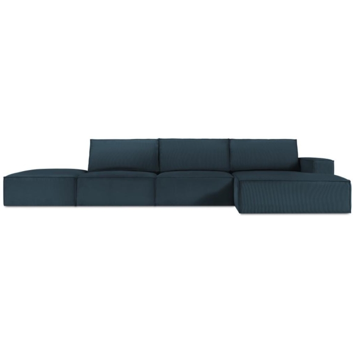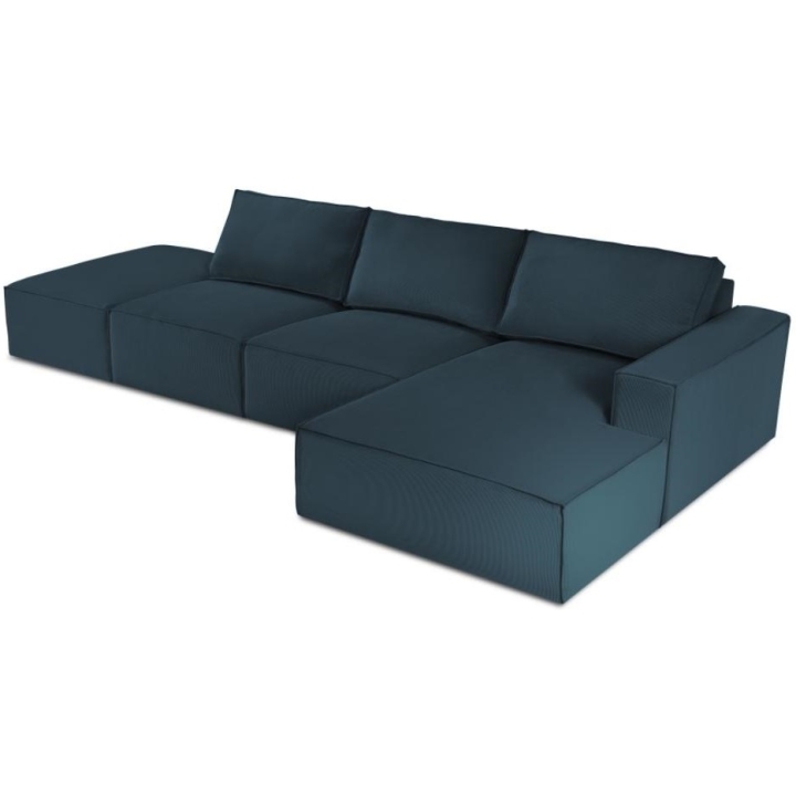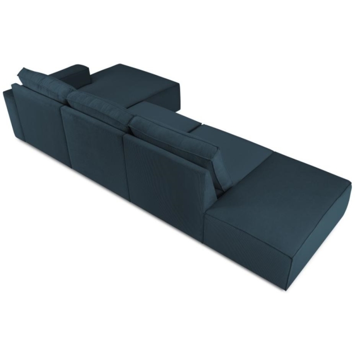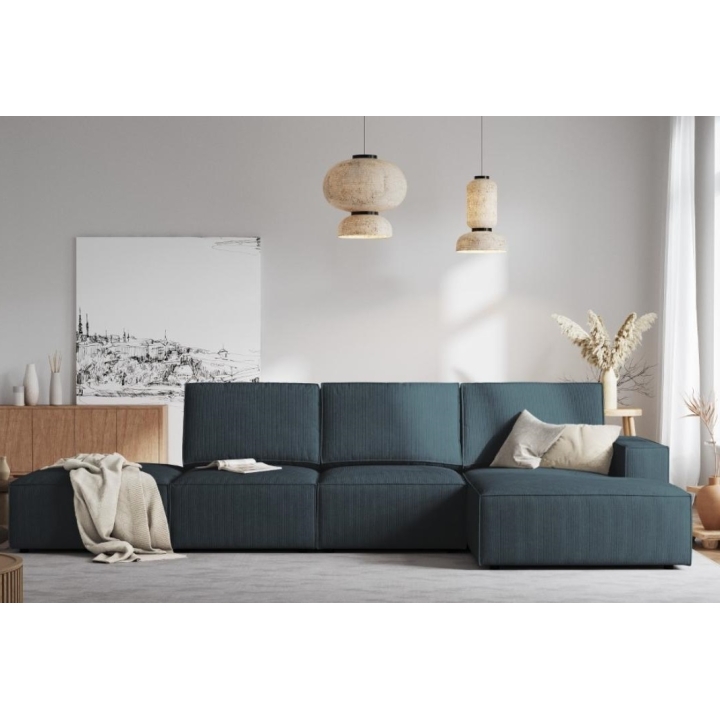 The stylish corner sofa 5 seater. Carlo by the manufacturer Milo Casa is a piece of furniture with dimensions: 341 cm wide, 90 cm high, 166 cm deep, which is characterised by its extreme comfort. This trendy corner sofa is available in 8 colours: Beige, Light Blue, Dark Blue, Grey, Light Grey, Yellow, Black and Bottle Green, so it will suit any type of interior. The seat filling is made from a combination of corrugated spring and high elasticity polyurethane foam, and the backrest is filled with silicone. The sofa is distinguished by its unusual, futuristic shape - it does not have a single backrest, which makes it more spacious. The piece of furniture is upholstered with corduroy fabric with a matt structure made of narrow 3 mm wide stripes, which ensures the highest comfort of relaxationand additionally adds elegance to the corner piece. The high quality materials used in the production ofthe furniture make the Carlo corner sofa characterised by high strength and durability. The furniture is set on low, plastic legs. The sofa can be manufactured on the left or on the right, so you can better adapt the furniture to your home.