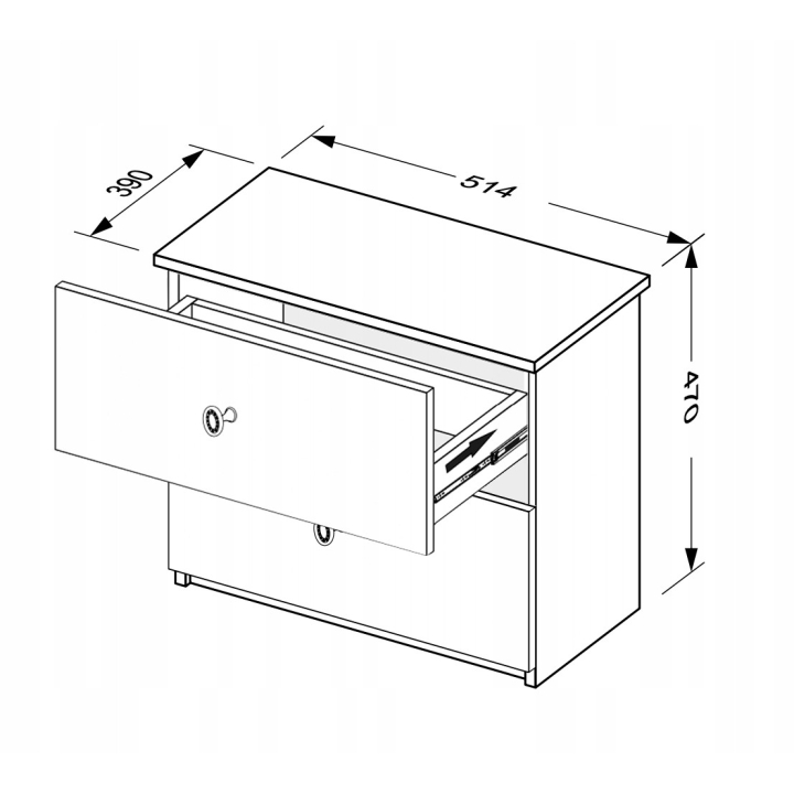 Measuring 37 cm deep, 51.4 cm wide and 48 cm high, the nightstand fits comfortably next to various bed heights. Inside, there is space for items you use most often — a book, glasses, a charger or skincare products. The drawer moves on telescopic runners, allowing smooth and stable operation even when used daily.