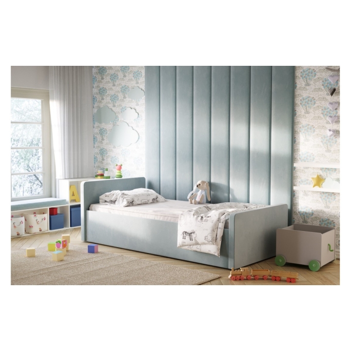 Do you have a taste for classic and functional solutions? The 81206 upholstered bed by MK Foam Koło is a piece of furniture that will meet your requirements. The classic, simple design with a functional container is an ideal choice for children's rooms. The sleeping surface is suitable for a 90 x 200 cm mattress. The edges have been gently rounded, making the furniture look subtle and safer to use. Upholstered bed 81210 is characterised primarily by minimalism and simplicity, thanks to which it will perfectly fit into various types of interiors. Characteristics: upholstered bed, 1-person, simple construction, wide range of materials to choose from, with a bedding container, modern design, comfort at the highest level. Design: board bed with furniture fabric upholstery, choice of fabric groups, without frame. Colours: Choice of fabric type/colour. Product details: width: 102 cm, height: 68 cm, depth: 212 cm, sleeping surface: 90 x 200 cm. Additional information: The headrest of the bed in the back is upholstered. The price is for the bed only, the mattress and frame must be purchased separately.