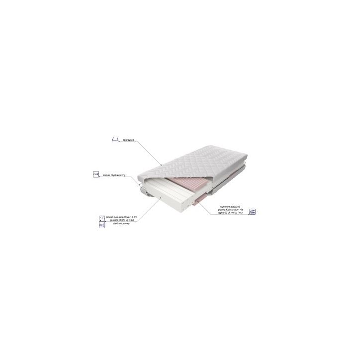 Bionatural is a foam mattress from MK Foam Kolo. The mattress is filled with high-elastic foam with high elasticity and high comfort. It reacts quickly to pressure and returns to its height just as quickly. On the other hand, the use of polyurethane foam ensures uniform firmness over the entire surface and good cushioning of the body. The Bionatural mattress has a removable cover that can be washed in a washing machine up to 60 C. Bionatural means excellent body support, excellent air circulation that prevents the growth of bacteria and fungi , and comfort at the highest level.