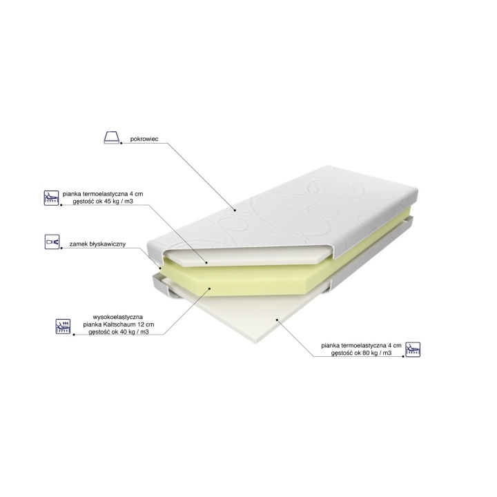 Laguna Thermo foam mattress is a perfect product for those who value high comfort and practical solutions. The contribution of the mattress consists of two types of thermoelastic foam and high resilience high elasticity foam. Laguna Thermo reduces pressure, which prevents numbness in arms and legs during sleep. The thermoelastic foam becomes soft where the body comes into contact with the mattress surface, giving a feeling of exceptional comfort. In addition, the foam is additionally antibacterial - specially protected against the growth of dust mites, mould and fungi. The advantage of the mattress is that it is a two-sided product which means that by turning the mattress, you can adjust the firmness to suit your needs.