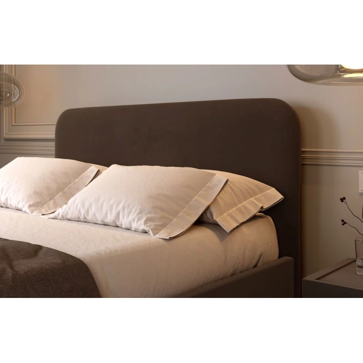 The gently rounded headboard of model 84090 introduces a sense of calm and harmony to the interior. Users can choose from a variety of fabrics and colors, making it possible to adapt the bed to different interior concepts. The classic headboard line emphasizes the timeless character of the structure.