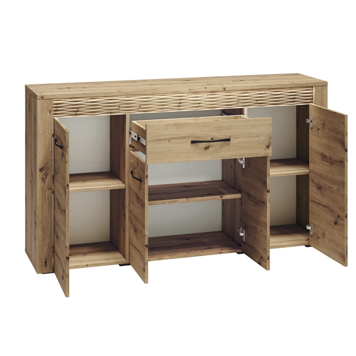 The large, capacious chest of drawers from the Artis collection is perfect for the bedroom as well as the living room. The chest of drawers will help you quickly and efficiently conjure up an aesthetically pleasing interior, which offers enough space for you to properly organise all your belongings. It is complemented by a spacious, smooth top, which is perfect for displaying your most precious decorations. The natural grain of the wood, beautiful grain and clear knots emphasise the character of the furniture. In combination with the balanced and simple design, they form an original duo that will transform any interior. Black handles perfectly harmonise with the warm wood décor adding a touch of glamour to the piece.