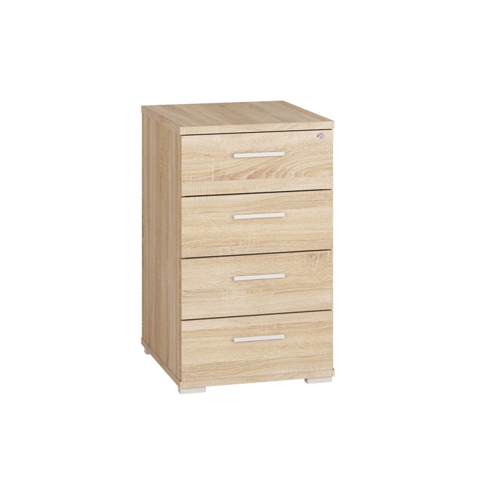 The Optimal desk extension will provide increased storage space for documents or various office accessories. It has four capacious drawers with long handles. This piece of furniture from the Optimal collection is the perfect solution for offices, conference rooms, open plan offices and also home offices. OPTIMAL is all about functionality. Made of high quality furniture board, it guarantees long-lasting use. The product is coloured in the shade of light sonoma, which makes it a perfect match for most arrangements.