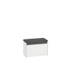 Hyga 02 shoe cabinet is a modern piece of furniture dedicated to the hallway, which serves as both a practical shoebox and a pouffe with a seat. What draws attention is the grey quilted upholstery of the seat, which adds timeless elegance to the furniture and ensures high comfort of use. The piece of furniture delights with its modern, minimalist design and universal colours, thanks to which it can be easily matched to most arrangements. The presented product is made of high quality laminated board. The Hyga cabinet is a contrasting combination of decors - snow pine and anthracite, which emphasises the character of the furniture and adds lightness.