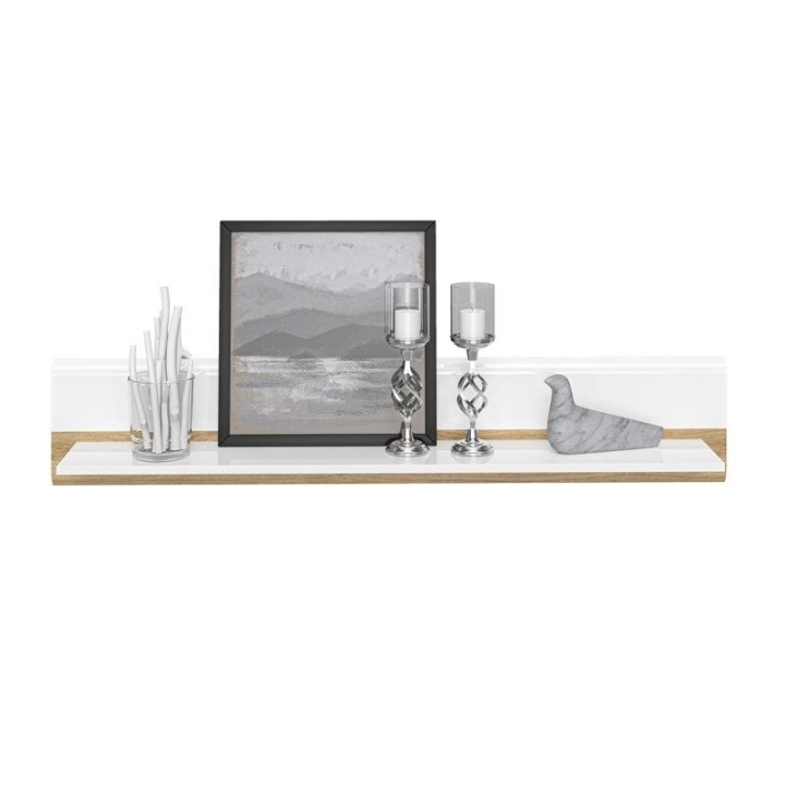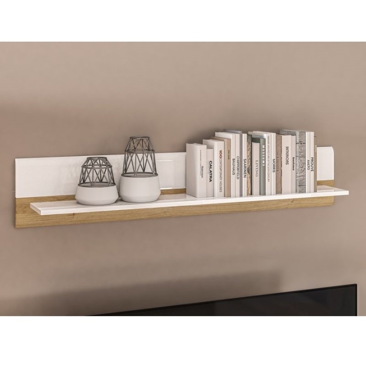 The Adagio 09 shelf from manufacturer ML Meble is a wonderful addition to the entire collection. The wall plate in white gloss and oak protects the wall from damage and provides a perfect background for your decorations, books or souvenirs that you want to display or protect from children's access. The white shelf adds contrast and perfectly illuminates the objects on it. In order to complete the perfect furniture set, we invite you to get other products from the Adagio collection by ML MEBLE manufacturer available in our offer.