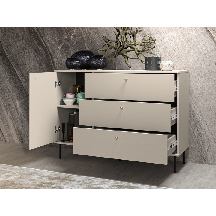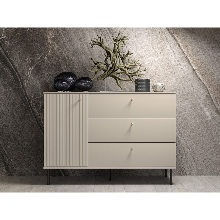 Are you looking for a practical piece of furniture that will also decorate your interior? The Sophia 05 chest of drawers from ML Furniture is just what you need. With appropriately designed doors and drawers, this piece of furniture ensures optimal use of space and elegant storage. The Cashmere colour in which it is finished adds subtlety and elegance, blending in with a variety of interior styles. By choosing an ML Meble product, you are opting for quality confirmed by years of tradition. Let the Sophia 05 chest of drawers bring a balance between functionality and style to your home, creating a comfortable and aesthetically pleasing space.