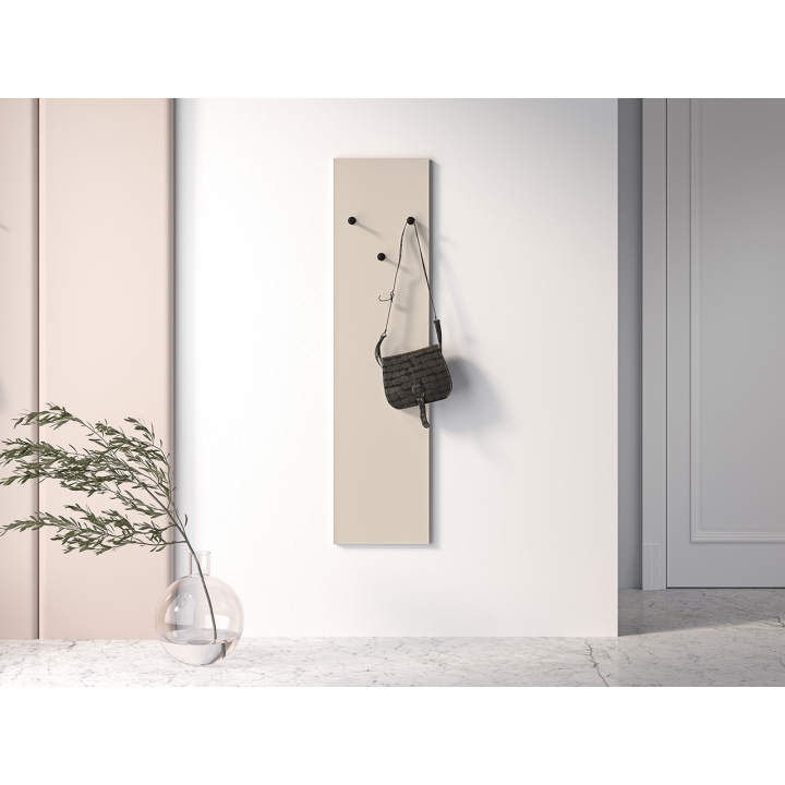 The Sophie type 17 hanger is a modern accessory that brings simplicity and style to the interior. Made from milled cashmere-coloured MDF, it looks aesthetically pleasing and fits in perfectly with current interior trends. Its minimalist form and three black handles for outerwear make the hanger the perfect complement to any hallway.