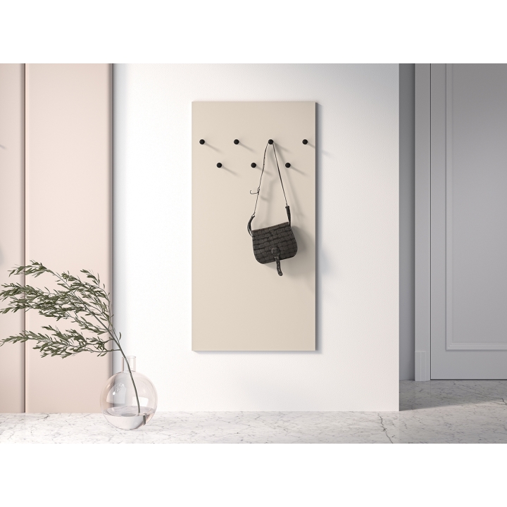 The Sophie type 17 hanger is a modern accessory that brings simplicity and style to the interior. Made from milled cashmere-coloured MDF, it looks aesthetically pleasing and fits in perfectly with current interior trends. Its minimalist form and three black handles for outerwear make the hanger the perfect complement to any hallway.