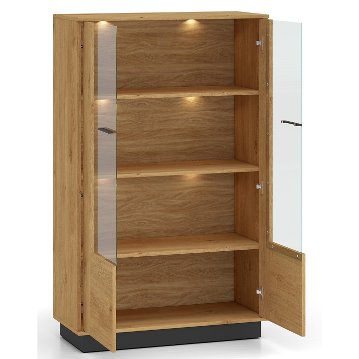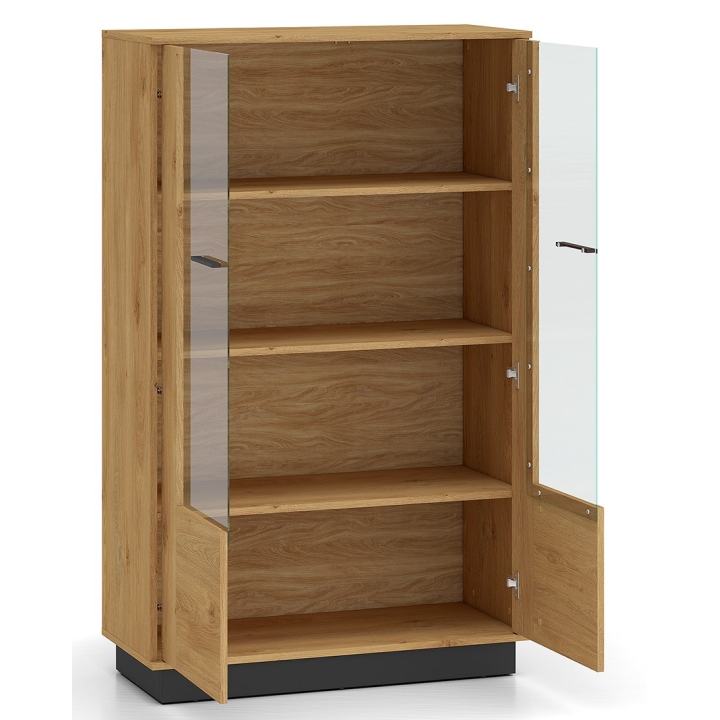 The fronts of the display cabinet are supplemented with certified tempered glass, increasing the safety of use. Thanks to its strength, it provides a solid protective barrier, while at the same time allowing for an elegant presentation of the stored items. The transparency of the glass introduces lightness into the interior, creating an effect of spaciousness and subtle display.