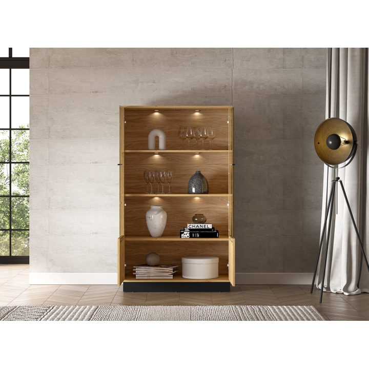 Thanks to carefully selected materials and modern design solutions, it is a durable and functional piece of interior furnishing. The possibility of enriching the furniture with optional lighting allows it to further emphasise both its form and the objects on display.