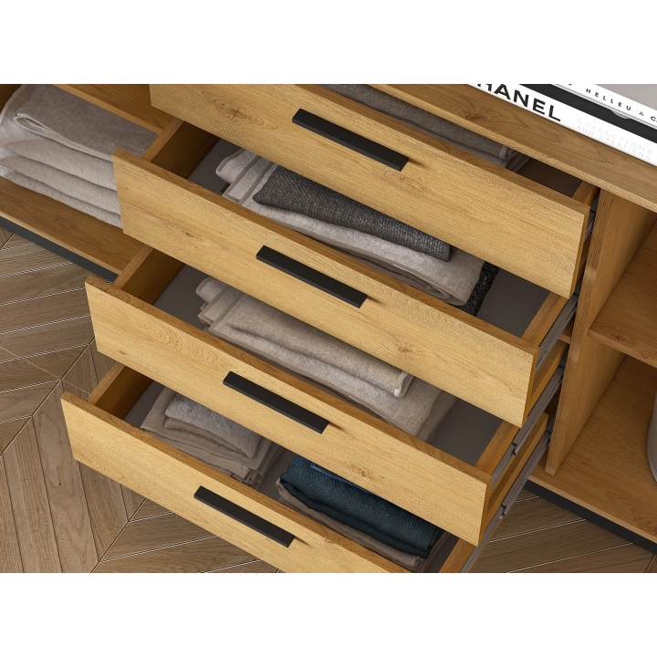 The drawers have a full-extension mechanism for easy access to the contents and to maximise their capacity. Thanks to special bottom reinforcement, their load capacity has been significantly increased, which translates into durability and robustness, even under heavier loads. The quiet closing system used minimises noise and increases the comfort of use.