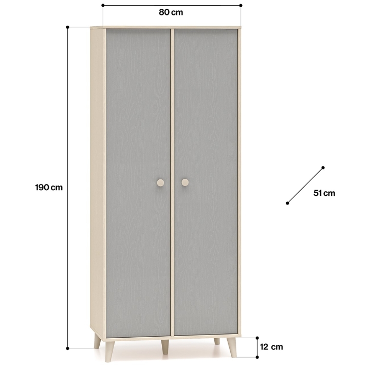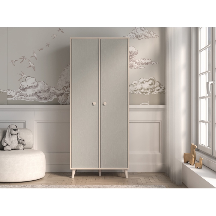 The Mevel 02 wardrobe from ML Furniture is a two-door model available in the shade Desert Sand in a combination of grey - Palladium Grey or pink - Millenial Pink. Its design includes two rods and four shelves, providing well organised storage space for clothes and accessories. Thanks to its compact dimensions of 190 cm in height, 80 cm in width and 51 cm in depth, it will work well in both larger and smaller interiors.