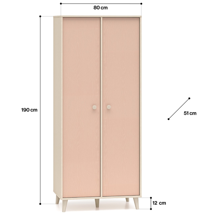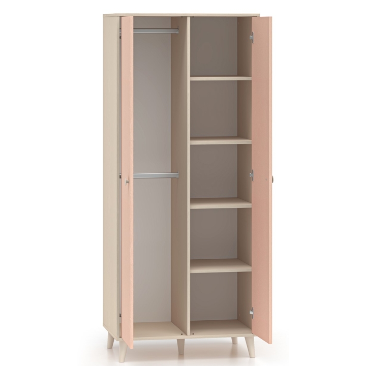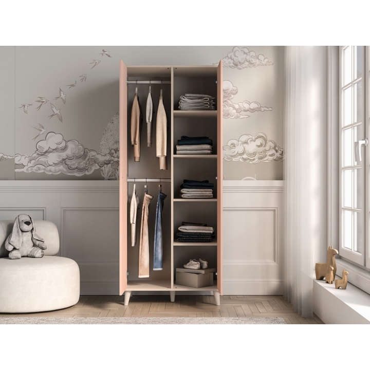 The Mevel 02 wardrobe from ML Furniture is a two-door model available in the shade Desert Sand in a combination of grey - Palladium Grey or pink - Millenial Pink. Its design includes two rods and four shelves, providing well organised storage space for clothes and accessories. Thanks to its compact dimensions of 190 cm in height, 80 cm in width and 51 cm in depth, it will work well in both larger and smaller interiors.
