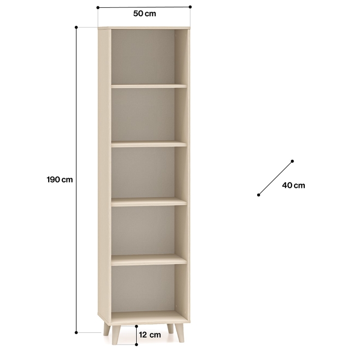 The Mevel 03 bookcase from ML Meble is a classic design with a minimalist character, based on slender, high legs. Four capacious shelves provide plenty of space for books, decorations or other items, helping to keep things tidy. Its compact dimensions - 190 cm high, 50 cm wide and 40 cm deep - make it suitable for both larger and smaller spaces.