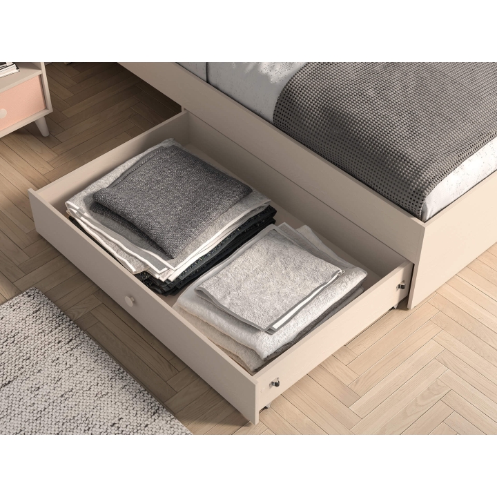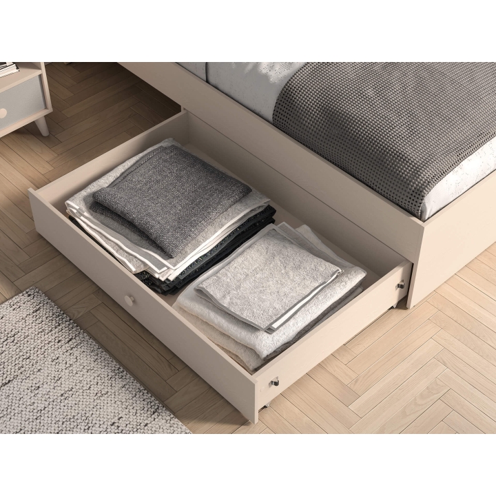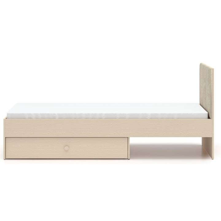 Thanks to the careful workmanship and thoughtful design, the furniture combines durability with comfort. Universal colours and the use of solid materials make the Mevel 08 bed a suitable choice for a youth or children's room. The functionality of the capacious drawer allows for convenient storage of bedding and other textiles, providing additional storage space and making it easier to keep things in order.
