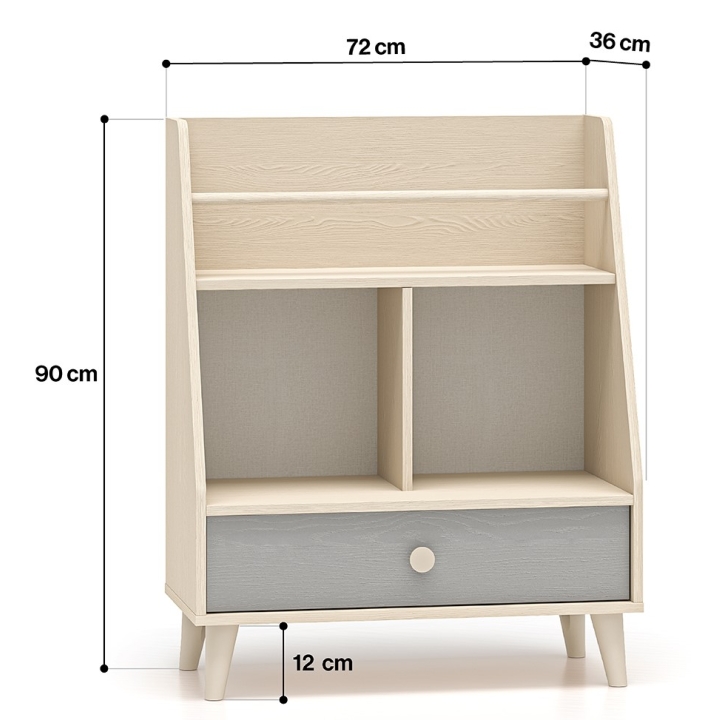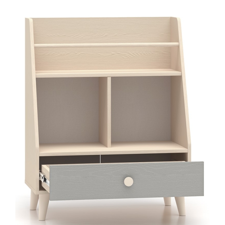 The ABS edging used not only strengthens the structure, but also provides an effective barrier against moisture and damage. Thanks to carefully selected raw materials, the Mevel 09 bookcase is a solid and practical solution for a child's room.