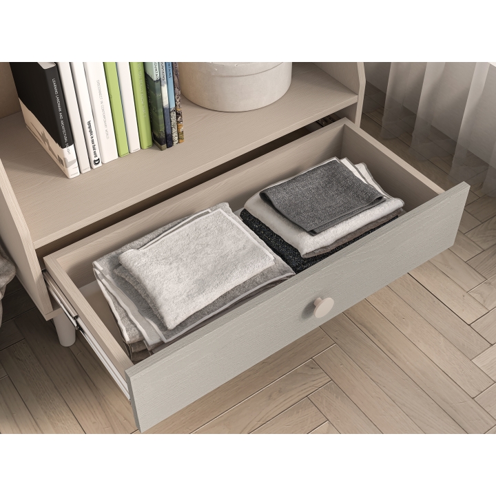 This model is equipped with two spacious niches and a roomy drawer, providing additional space for small items. The whole is supported by delicate legs, which give the unit a light and subtle appearance. The compact dimensions of 90 cm in height, 72 cm in width and 36 cm in depth mean that the furniture will fit into even small rooms.