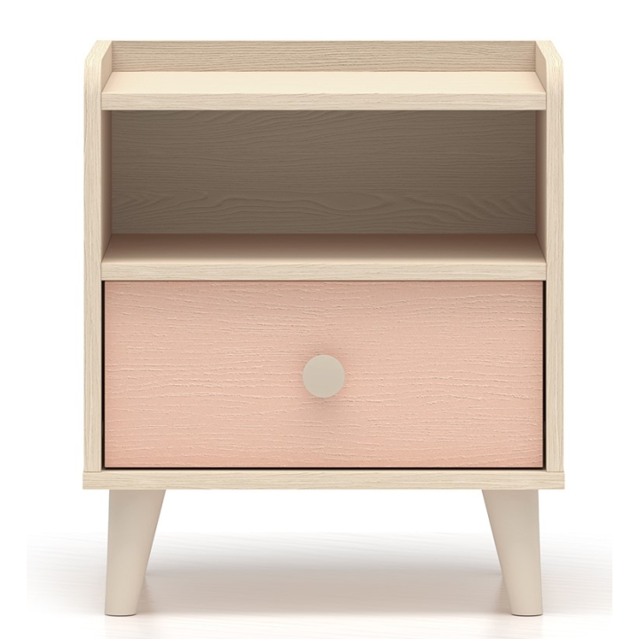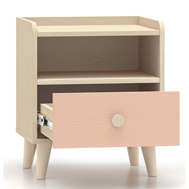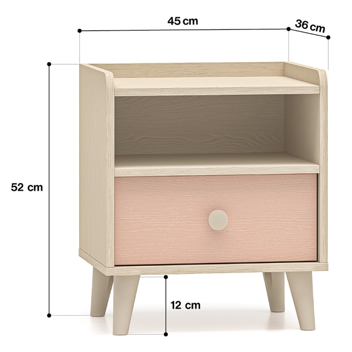 The Mevel 10 bedside table by ML Meble is available in two colour variants - Sandy Beige - juxtaposed with Grey Palladium or Pink - Millenial Pink. The compact dimensions of 52 cm high, 45 cm wide and 36 cm deep make it perfect for a children's room. The 13 kg construction ensures stability and comfortable use.