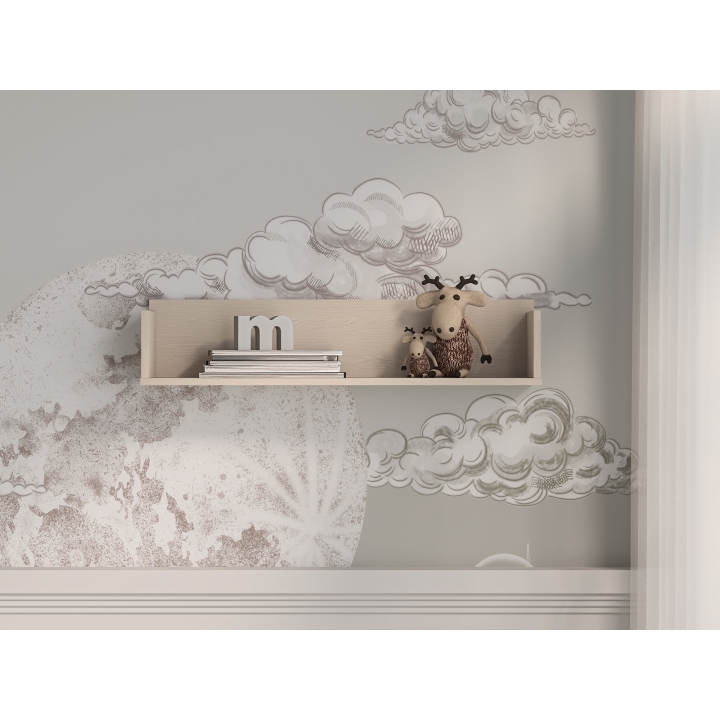 The neutral colour of sandy beige makes the shelf fit into both light and darker interiors. It can serve as a subtle background for decorations or emphasise the character of a child's room. Its universal design allows it to be freely combined with other furniture.