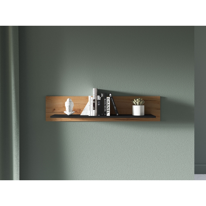 The Urso 12 shelf by ML Meble is a stylish addition to the living room, dining room or bedroom, which fits perfectly into modern and classic interiors. Thanks to the combination of the Craft Oak Gold colour scheme and black accents, the shelf harmonises with other elements of the Urso collection to create a coherent interior design. The design, measuring 110 × 22 × 24 cm, provides adequate space for books, decorations, plants or other everyday objects.