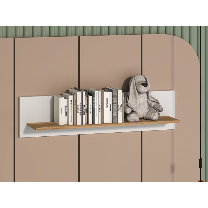 The Torino 10 hanging shelf from ML Meble is a proposal for people looking for a subtle place to display books, decorations or family photographs. The combination of white with light oak gives it a light, modern character that blends well with many interior arrangements. Its simple form makes it fit harmoniously into the space of a living room as well as a bedroom or a child's room.