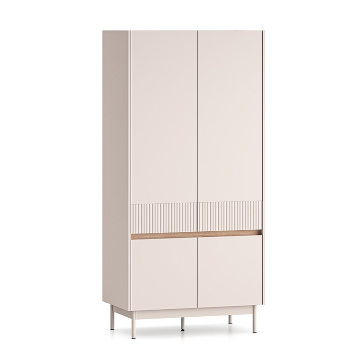 The Dunea 01 four-door wardrobe has been designed with organised storage for clothes, accessories and home textiles in mind. The interior features a metal bar that extends across the entire width of the unit, allowing you to hang longer items of clothing such as coats and dresses. The lower recess offers a considerable amount of space - ideal for storing bed linen, towels or other larger items.