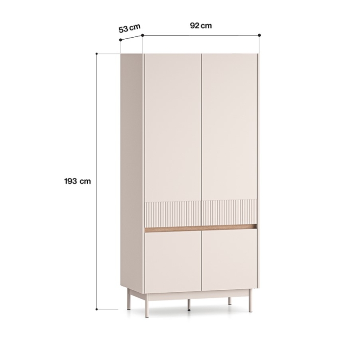 The furniture body measures 193 cm in height, 92 cm in width and 53 cm in depth, which makes it suitable for both larger and smaller interiors. Its symmetrical form and proportions fit into both contemporary and more classic arrangements. Subtle details create a balanced composition with a timeless character.