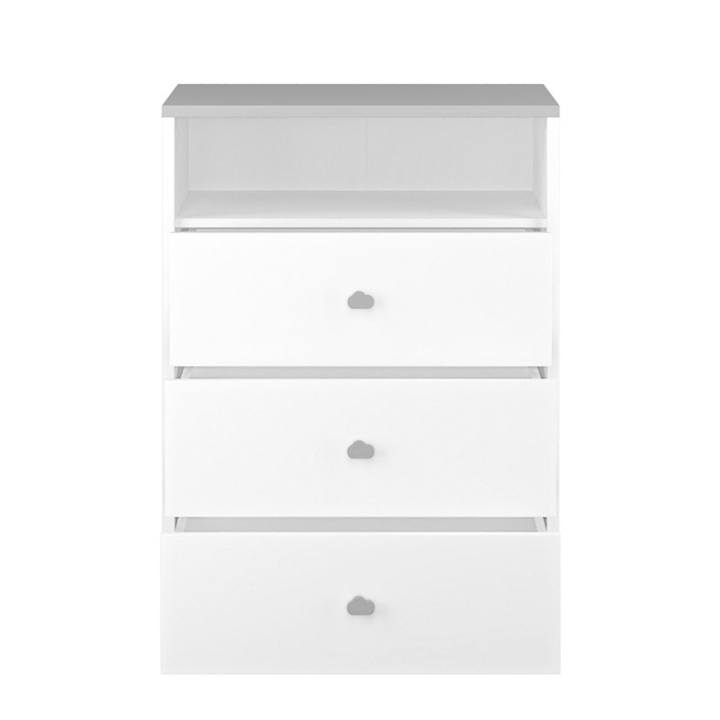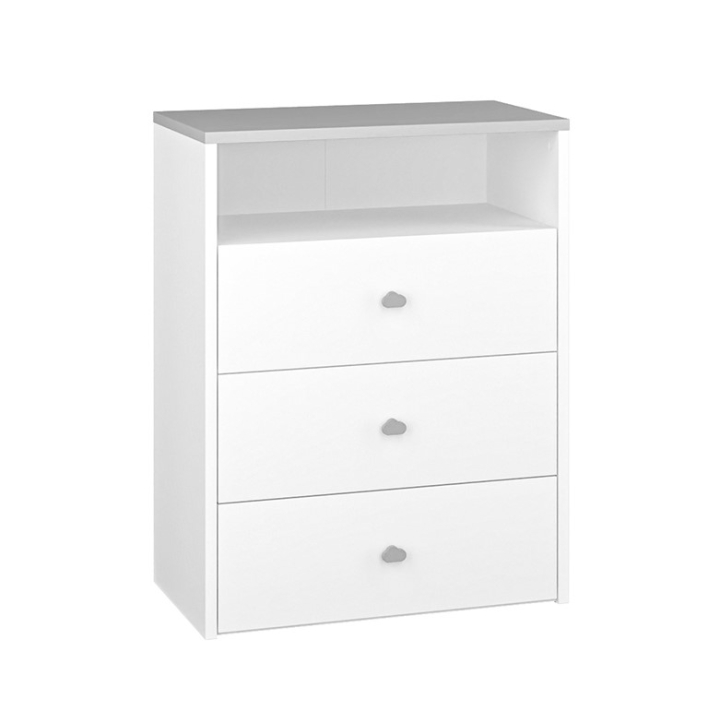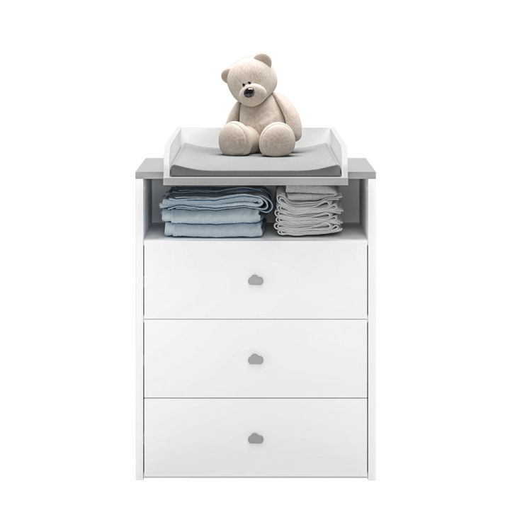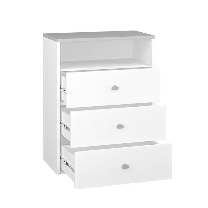 The furniture is 74 cm wide, 40 cm deep and 95 cm high, so it will fit even in smaller rooms. Three roomy drawers provide ample space for children's clothing, accessories or handy toys. The drawers are fitted with full-extension slides for easy daily use and full access to the contents.
