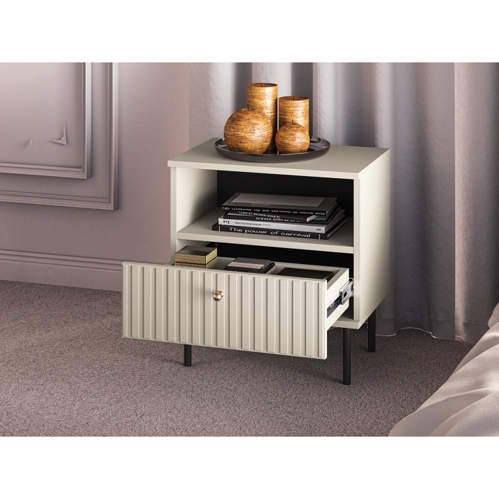 Are you looking for a functional and stylish bedside cabinet to add elegance to your bedroom? The Sophie 07 nightstand from ML Furniture is the perfect choice. Finished in a soft Cashmere colour, it will fit in perfectly with any style of interior. It offers practical storage space to ensure all your essentials are always to hand. By choosing ML Furniture, you are opting for durability and unparalleled quality, confirmed by the brand's long-standing reputation. Enjoy elegance and functionality in your bedroom with the Sophie 07 nightstand.