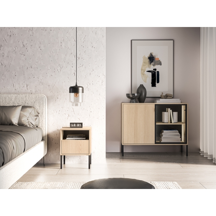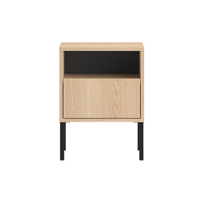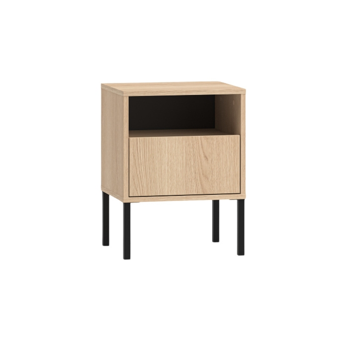 The top surface provides a stable place for a lamp, phone, or alarm clock, while the open niche below is ideal for books or magazines. The unit also includes a spacious drawer with full extension, ensuring convenient access and helping to organise smaller personal items.