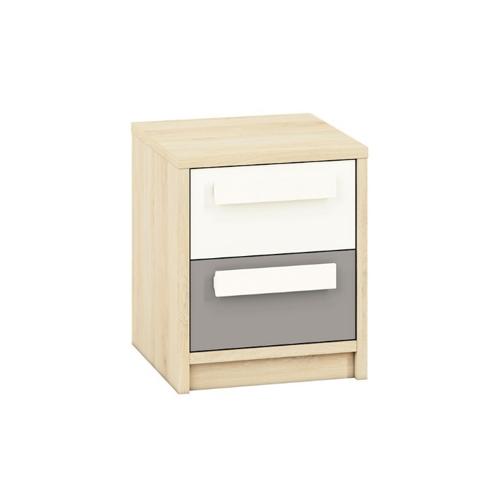 The Drop 13 nightstand for a children's or youth room is a unique proposal from the Polish manufacturer ML Meble. The cabinet delights with its classic, yet highly original form, which draws the attention of a lover of beauty and original decorative patents. Bedside cabinet Drop 13 is a choice of colour variants, so we can be sure that it will appeal to both girls and boys. The whole Drop 13 bedside cabinet is made of solid laminated board in the colour of beech fjord, resistant to mechanical damage (e.g. impacts), as well as moisture and high temperatures. The solid edge reinforcement is ABS edging, which effectively protects against any mechanical damage at the corners. ML Meble bedside cabinet has two capacious drawers with a full draw-out system, where we can store various small items. The whole set is wonderfully complemented by striking handles.