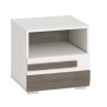 The Blanco 18 nightstand from the Polish manufacturer ML Meble impresses with its minimalist design and neutral, subdued colours. Thanks to this, this piece of furniture perfectly fits into the design of modern and spacious bedrooms, where we want to surround ourselves only with practical and naturally beautiful accessories. The Blanco 18 bedside cabinet is recommended as an addition to the bed of the same series, introducing a touch of elegance and sophistication to the bedroom. The cabinet by ML Meble is also perfect for youth rooms, all thanks to its universal colour scheme. Blanco 18 cabinet has been made of solid laminated board, the body of which has been maintained in the colour of snow pine, with a texture imitating the natural structure of wood. The cabinet is resistant to mechanical damage, heat or moisture, which translates mainly into its long-term durability. An additional advantage are the edges reinforced with ABS edging, which protects against peeling or deformation of the material. Impressive inserts in the colour new grey, made of MDF furniture board, have been added to the cabinet body. The Blanco 18 bedside cabinet has one open shelf for a book or other small items, as well as one drawer with handle and full-extension system.