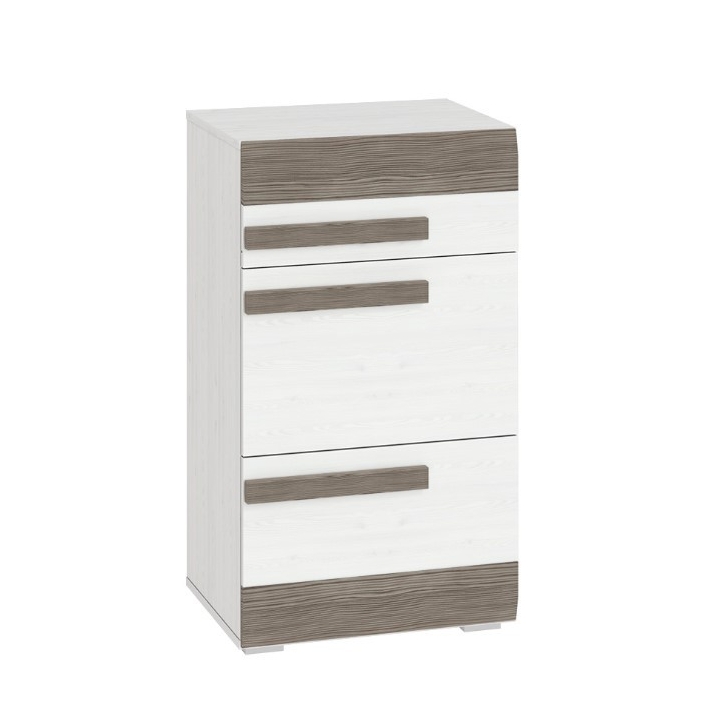 The Blanco 20 tall shoe cabinet designed by the ML Meble brand is one of many proposals from the cult Blanco system. The cabinet, maintained in neutral colours, delights with its minimalist design and attention to every detail, even the smallest ones. Its universal design allows it to be placed in any interior, especially in minimalist, modern hallways. Blanco 20 is a cabinet presenting a unique combination of two colours: snow pine and MDF in new grey. The ML Meble cabinet was made of top quality laminated board, which is characterised by excellent resistance to mechanical damage, such as impacts or cracks, as well as to high temperatures or moisture. Another advantage of Blanco furniture is the ABS edge finishing, which translates into increased protection against peeling or deformation of the material. The Blanco 20 shoe cabinet has a top drawer with a full-extension system and two hinged doors, inside which you will find as many as eight practical shelves for shoes.