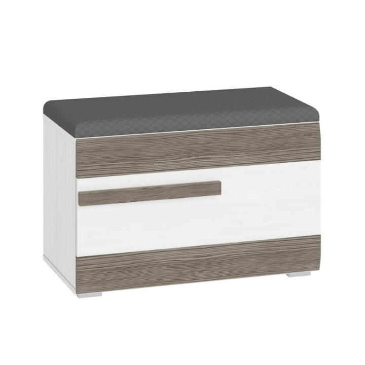 The Blanco 21 shoe cabinet designed by the renowned ML Meble brand is a perfect blend of universal colours and minimalist design. The small dimensions of the furniture make it gain in functionality and wonderfully complements the design of spacious anterooms. Blanco 21 ML Meble is a cabinet recommended as an addition to interiors in Scandinavian and minimalist style, where practical aspects are most important. The ML Meble cabinet was made of high quality laminated board, resistant to mechanical damage (impacts, scratches, cracks), as well as high temperatures and humidity. In addition, the edges of the furniture have been finished with ABS edging, which contributes to protection against peeling or deformation of the material. Blanco 21 shoe cabinet was presented in two colours: snow pine and elements in new grey. It is a model with a comfortable soft seat and a single door, under which four shoe shelves are hidden.