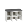 The Blanco 22 shoe cabinet by the Polish manufacturer ML Meble will certainly meet the expectations of everyone who appreciates minimalism and functionality in their interior. The cabinet from the bestselling Blanco system perfectly fits in with Scandinavian interiors, maintained in light, subdued colours. The Blanco 22 cabinet is recommended as a decorative addition to a hallway where Blanco furniture dominates. The shoe cabinet by ML Meble is also an original combination of contrasting colours - the cabinet body in snow pine and the seat maintained in new grey. The Blanco 22 cabinet has a soft, upholstered seat on which we can sit while putting on our shoes. Below, the interior of the locker has been designed from laminated board (snow pine colour) with increased resistance to mechanical damage (impacts, scratches, cracks), as well as to high temperatures or moisture. The edges of the cabinet have been reinforced with ABS edging, which protects the furniture against unsticking or deformation of the material. The interior of the Blanco 22 cabinet has been divided into six small shelves which can successfully accommodate pairs of shoes. A panel in a contrasting dark colour has been placed at the back.