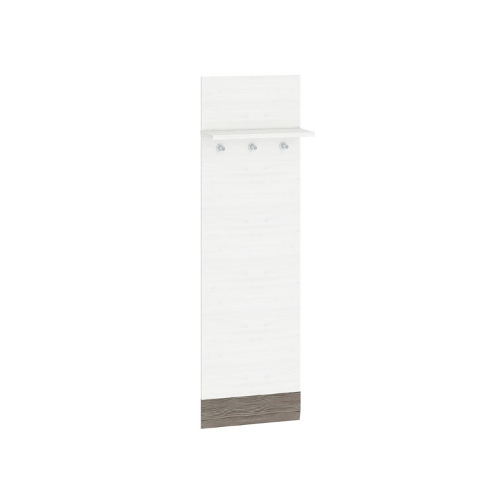 Blanco 23 hanger is a proposal from the Polish manufacturer ML Meble, addressed to everyone who appreciates timeless minimalism and elegance in a practical edition. The hanger from the popular Blanco furniture system successfully refers to the fashionable Scandinavian style, combining natural colours and universal decorative solutions. Blanco 23 hanger is made of solid laminated board in the colour of snow pine, ensuring adequate protection against mechanical damage (knocks, scratches, cracks), as well as against heat and moisture. The edges of the board were reinforced with ABS edging, which adds to the furniture's aesthetic finish and exceptional durability. The eye is also attracted by the beautiful decorations visible at the bottom of the hanger, maintained in the colour scheme of new grey. Blanco 23 hanger has three hangers for outerwear and a practical shelf at the top, on which you can put various trinkets, such as a hat or gloves. The ML Meble hanger blends perfectly with other furniture from the Blanco series.