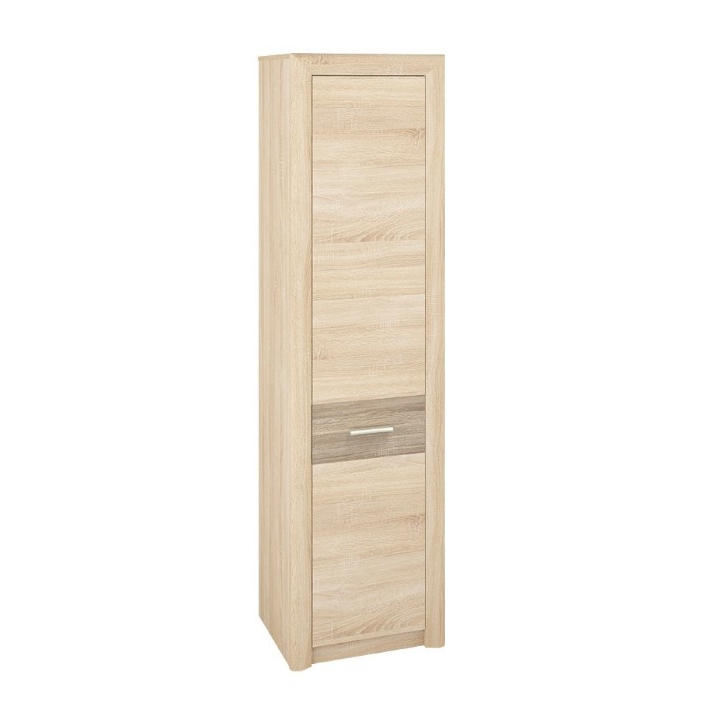 Furniture from the Castel collection is a proposal of the ML Meble brand for people looking for modern but also timeless display cabinets, chests of drawers, tables and wardrobes for their home. See for yourself how the stylish and functional Castel model 03 P linen cabinet can transform your bedroom or living room by offering storage space. The visually light Castel collection is a set of diverse furniture that will facilitate the arrangement of any room. Elegant display cabinets, a functional RTV cabinet, tables or chests of drawers are indispensable pieces of furniture in the dining room and living room, while capacious wardrobes, a practical desk or hanging shelves and a linen wardrobe will prove useful in functional bedrooms and tasteful youth rooms. The light colour of oak sonoma, which was chosen by the ML Meble designers for the Castel collection, gives the whole set a fresh and cosy look. Fluted inserts in truffle colour and rounded edging and finishing strips make the stylish Castel collection stay in line with the current trends.