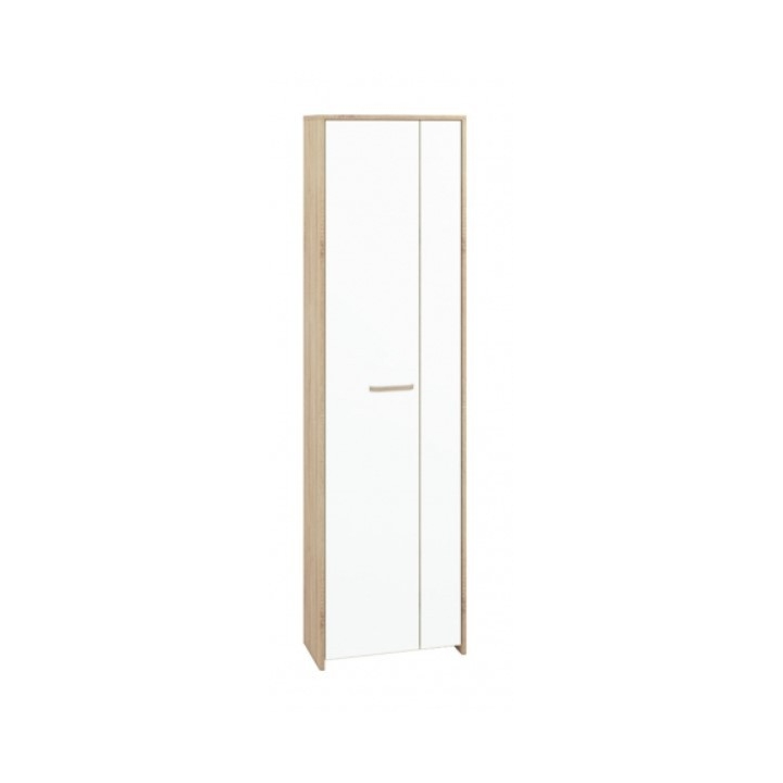 Orlando 01 one-door w ardrobe for the hallway is a unique proposal of the ML Meble brand. A simple, stylish piece of furniture will perfectly complement the decor of your hallway, taking care not only of exceptional aesthetics, but also extraordinary functionality. The Orlando 01 wardrobe is a great solution for an anteroom arranged in a minimalist or Scandinavian style, where space and cosiness count. ML Meble wardrobe is made of durable laminated board, whose edges have been additionally reinforced with special ABS edging. This simple procedure will ensure that your furniture is resistant to mechanical damage, as well as to high temperatures and moisture. Orlando 01 is a wardrobe in light colours - light sonoma oak wood and white. Its interior is designed with two double clothes hangers and three small shelves for small items.