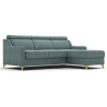 Functional Smart corner by MP Nidzica, presented in a configuration: FL + SZS P. The corner sofa belongs to a modern modular collection, which can be freely customised. Comfortable, soft seats have been combined with a profiled backrest and adjustable headrests, which can be set at different angles of inclination. The Smart corner sofa is also equipped with a sleeping function, thanks to which it can be used as a comfortable bed for two people. In the presented version, the corner sofa has a striking armrest and an extended chaise longue on the other side.