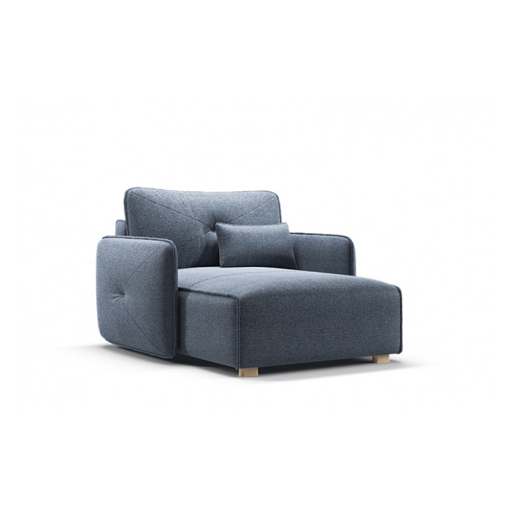 The chaiselongue / mega armchair with a sleeping function from the Nino collection by MP Nidzica is a small, compact piece of leisure furniture that has been equipped with a sleeping function. NINO is an excellent choice for those who expect full functionality from a piece of furniture in a small size. The filling is a bonell spring, while the cushions have a silicone insert. All this ensures incredible comfort of use. The module is also equipped with a container for bedding. The Nino modular collection consists of various one-metre wide pieces, which can be used for two or more people.