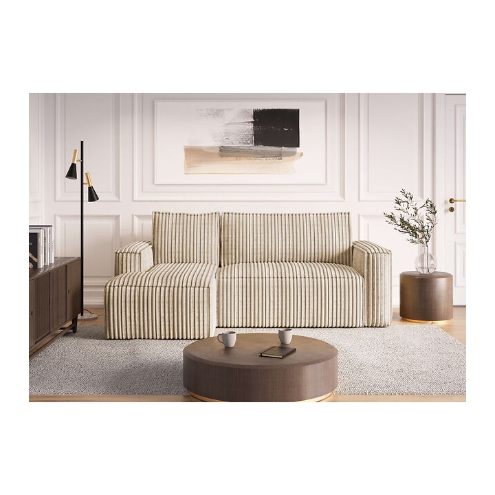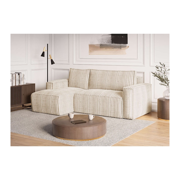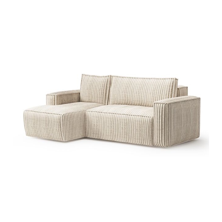 The Softi corner sofa from MP Nidzica is a versatile piece of furniture that will be perfect for any living room. It is a small corner sofa with a width of 220 cm, a depth of 152 cm and a height of 80 cm, ideally suited to smaller and medium-sized rooms, providing a comfortable place to relax. The sleeping function with DL mechanism allows the furniture to be quickly unfolded to the position of a bed with a sleeping surface of 145x195 cm, making it a comfortable solution for both everyday use and special occasions.